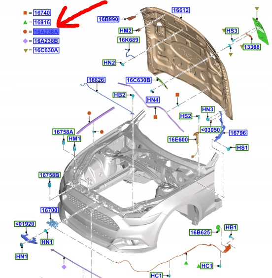 USZCZELKA MASKI BŁOTNIKA PRAWA MUSTANG Mk6 2017- 2170570 _ JR3B-16A570-AB