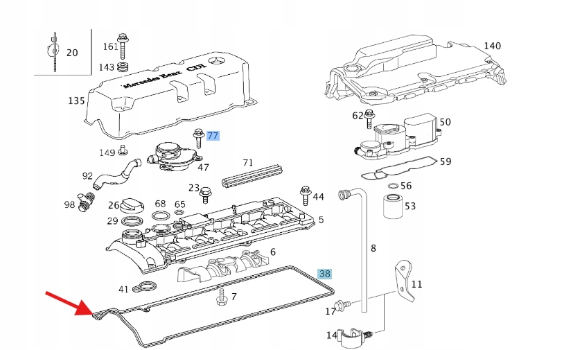 USZCZELKA POKRYWY ZAWORÓW DIESEL M612 M647 MERCEDES OE A6120160021