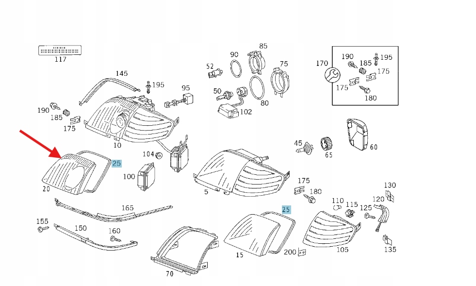 USZCZELKA SOCZEWKI REFLEKTORA PRZÓD MERCEDES SL W129 OE A1298260780