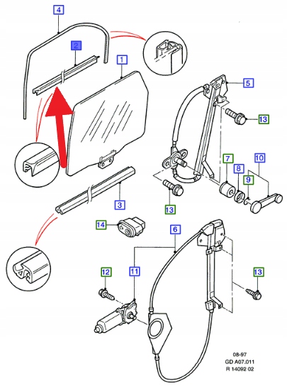USZCZELKA SZYBY DRZWI LEWA FORD MONDEO 99- 00 OE 1108845 _ XS71-F25861-AB