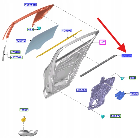 USZCZELKA SZYBY DRZWI LEWY TYŁ FORD FOCUS 2018- OE 2366703 _ JX7B-A25861-AD