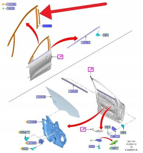USZCZELKA SZYBY DRZWI PRAWY PRZÓD FORD KUGA 2020- 2638504 _ LV4B-S21510-CF