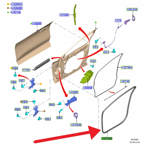 USZCZELKA WNĘKI DRZWI PRZÓD L P FORD FOCUS 2018- 2438841 _ JX7B-A20708-AG