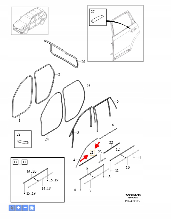 USZCZELKA ZGARNIAJĄCA SZYBY LEWY PRZÓD VOLVO XC90 2016- OEM/OE 31352708