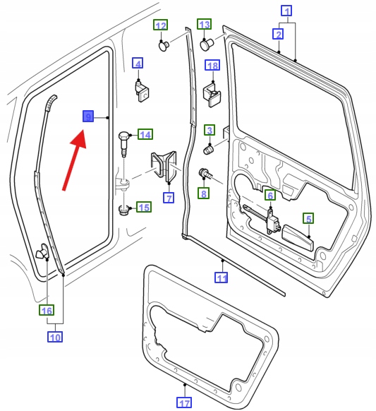 USZCZELNIENIE DRZWI TYŁ FORD GALAXY 1994- 2006 1046490 _ 95VW-25385-BEYYEJ