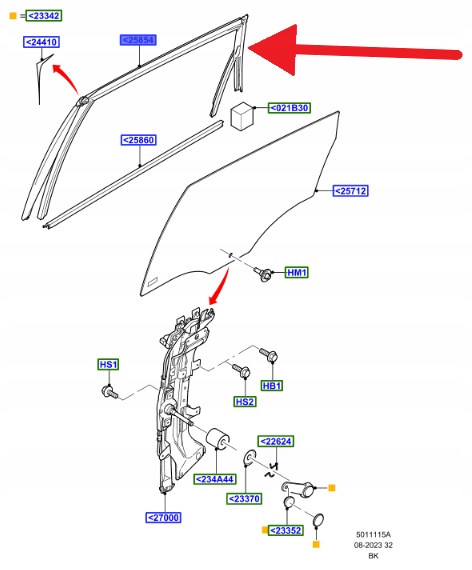 USZCZELNIENIE OKNA DRZWI TYŁ LEWA FORD OE FIESTA 2001-2012 2S61-A25855-AR