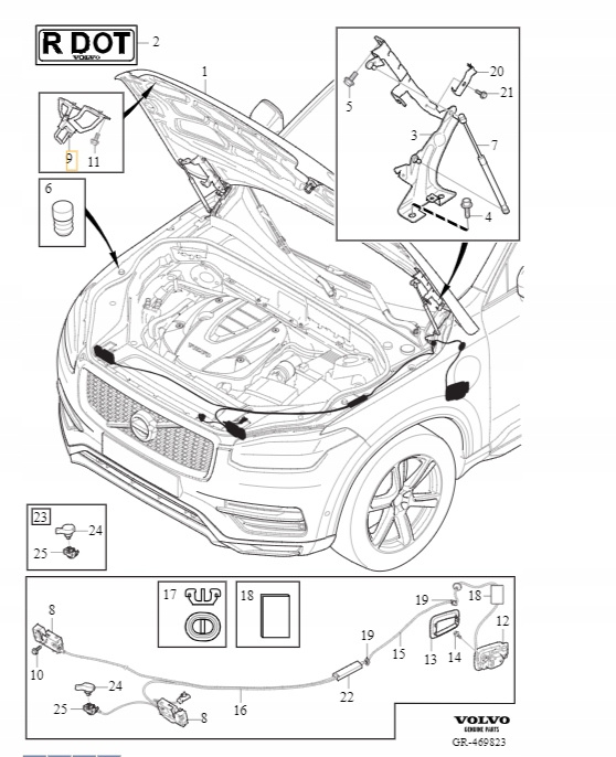 - Volvo OE 31371488 zamek maski PRAWY