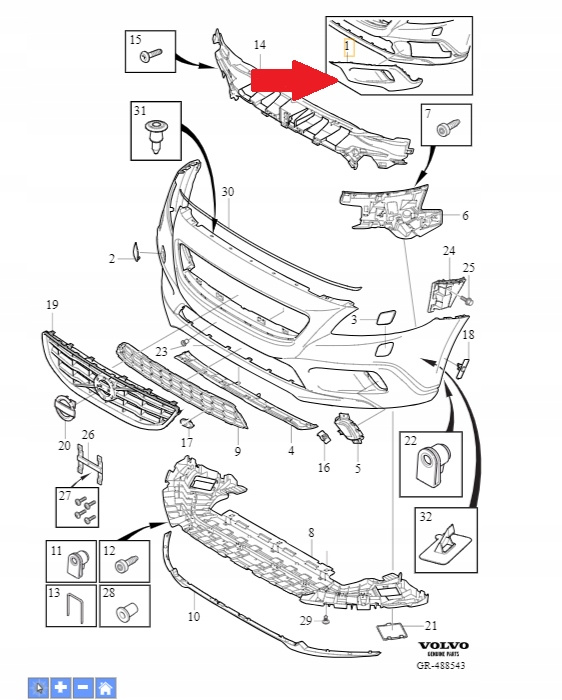 - Volvo V40 CC prawa kratka zderzaka OE 31353342