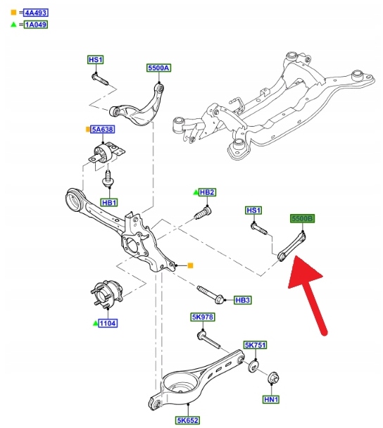 Wahacz zawieszenia tylnego dolny poprzeczny