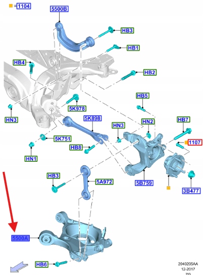 Wahacz lewy tył - bez układu zmiennej charakterystyki zawieszenia