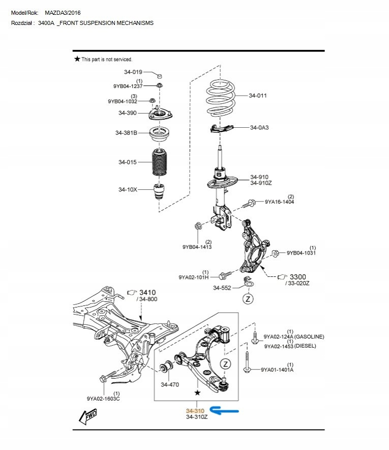 Wahacz prawy dolny - Mazda 3 BM/BN_B60S34300G