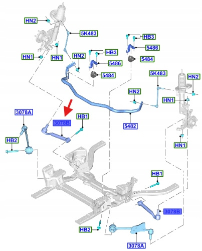 Wahacz prawy przedni skierowany ku tyłowi - z pakietem zwiększenia osiągów