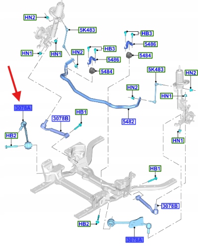 Wahacz przedni prawy pozycja przednia - z pakietem zwiększenia osiągów
