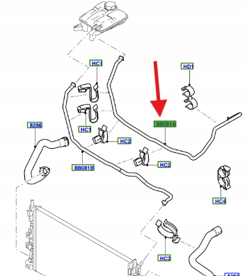 WĄŻ ZBIORNICZKA WODY 2.0 FORD FOCUS MK2 C-MAX 2003- 1490703 _ 3M5H-8C012-KL