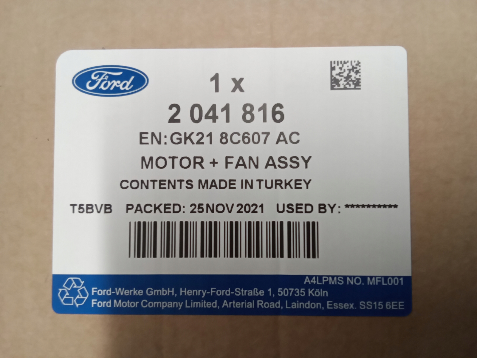WENTYLATOR CHŁODNICY FORD TRANSIT Mk7 Mk8 CUSTOM 2041816 _ GK21-8C607-AC