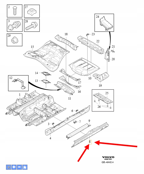 WEWNĘTRZNY PRÓG PRAWY VOLVO XC90 2016- OEM/OE 31416339