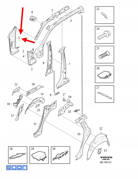 WEWNĘTRZNY SŁUPEK A PRAWY DOLNY VOLVO XC90 2016- OEM/OE 31672156