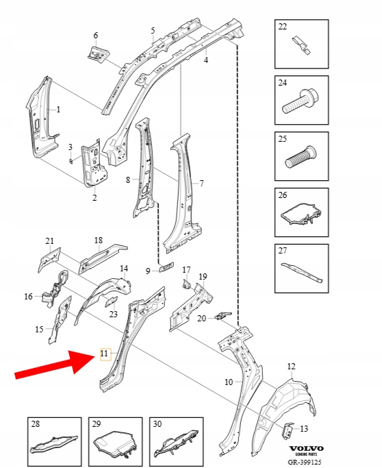 WEWNĘTRZNY SŁUPEK B PRAWY VOLVO XC90 2016- OEM/OE 32321992