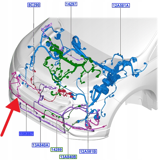 WIĄZKA CZUJNIKÓW PARKOWANIA PRZÓD EDGE 2016- OE 2357110 _ GT4T-15K867-KE