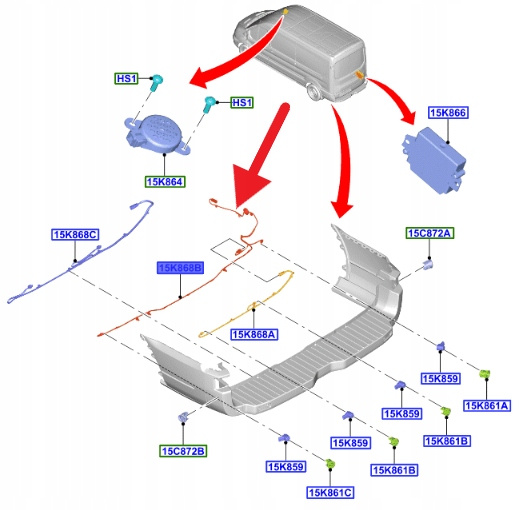 WIĄZKA CZUJNIKÓW PARKOWANIA TYŁ TRANSIT 2014- OE 5384629 _ CK4T-15K868-DC