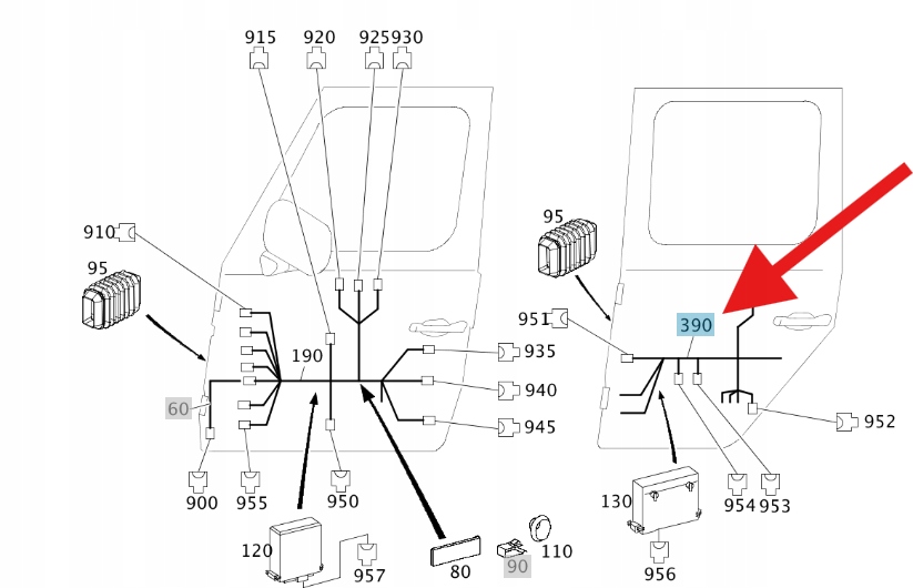WIĄZKA ELEKTRYCZNA DRZWI TYŁ MERCEDES G W463 OE A4638208401
