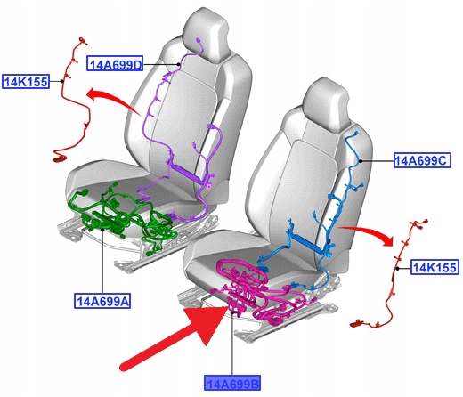 WIĄZKA FOTELA LEWY PRZÓD MUSTANG 2015- 2023 OE 5278727 _ EU5T-14D231-DAC