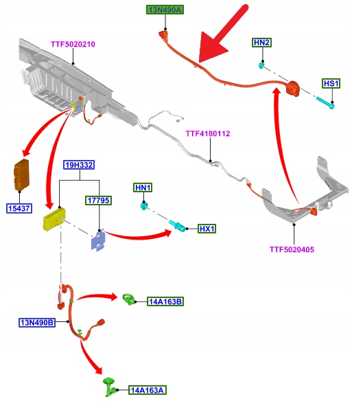 WIĄZKA HAKA TYŁ FORD TRANSIT CUSTOM 2012- OE 2682317 _ BK2T-13B576-DE