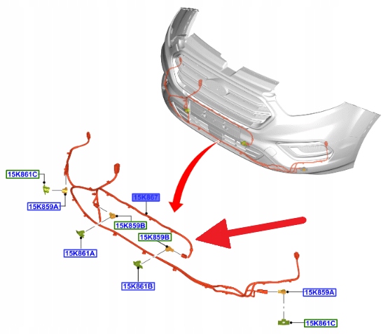 WIĄZKA PRZEDNIEGO ZDERZAKA PDC CUSTOM 2020- OE 2524014 _ KK2T-15K867-BE