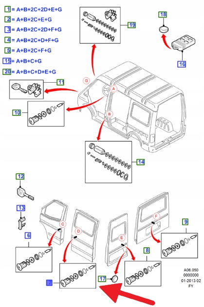 Wkładka zamka drzwi zestaw - naprawa prawa strona/tył