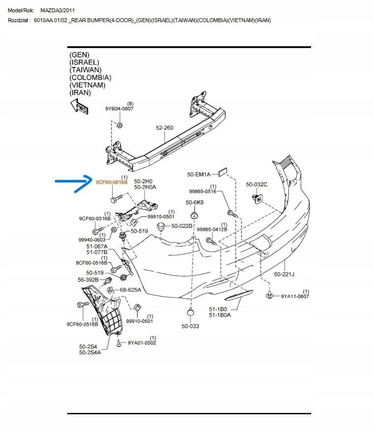 Wkręt mocujący - Mazda 323 626 3 BL 3 BK_9CF600616B