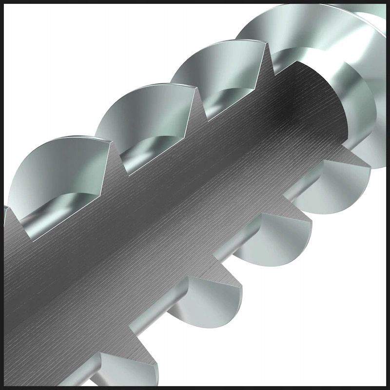 - Większe przeniesienie mocy w twardym drewnie dzięki wzmocnionej, asymetrycznej geometrii boku gwintu grubozwojowego