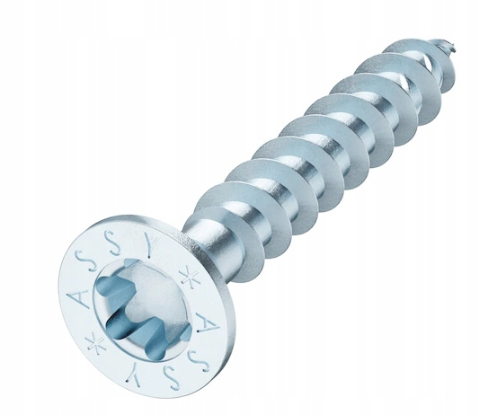 - Wkręty do płyty wiórowej ASSY 4, ASSYplus 4 i ASSYplus 4 FT są zoptymalizowane pod kątem stosowania w drewnie i materiałach drewnianych. W przypadku zastosowań w kotwach z tworzywa sztucznego, w których można również zmniejszyć obciążenie, należy stosować wyłącznie wkręty bez zoptymalizowanej końcówki gwintowanej (ostrze z przedłużonym przeciwgwintem, końcówka wiertarska, samooczyszczający się rowek itp.), takie jak wkręty ASSY D z łbem płasko-soczewkowym lub z łbem płasko-soczewkowym