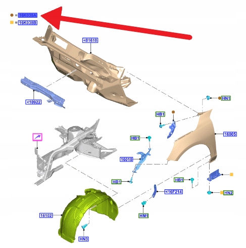 WSPORNIK BŁOTNIKA LEWY PRZÓD FORD FOCUS MK4 2018- 2206960 _ JX7B-A16C177-AC