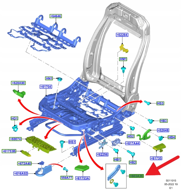 WSPORNIK FOTELA PRZÓD PUMA FIESTA FOCUS 2021- OE 2283866 _ H1BB-600C98-AA