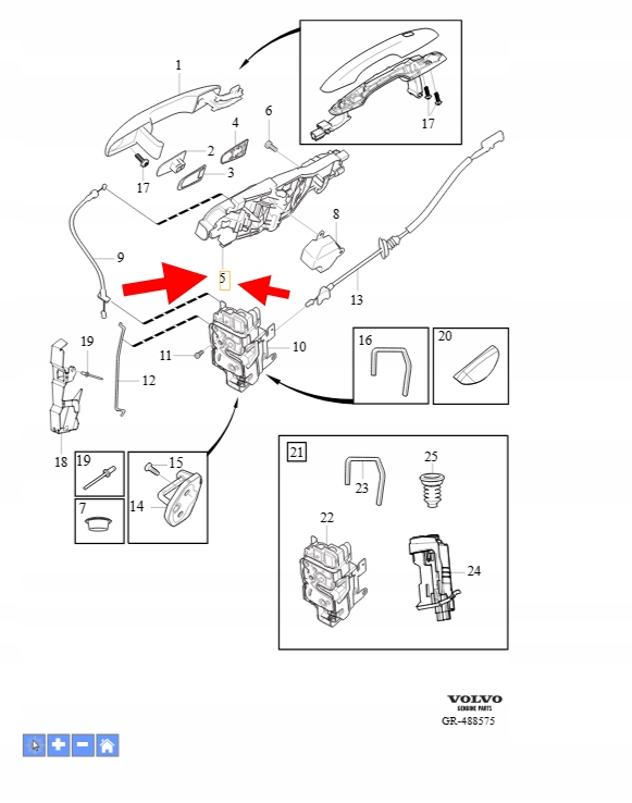 WSPORNIK KLAMKI DRZWI LEWY VOLVO XC90 2016- OEM/OE 31416244