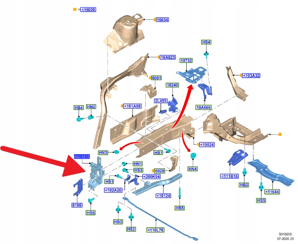 WSPORNIK PODŁUŻNICY PRAWY PRZÓD FORD FOCUS 2018- 2368456 _ JX61-A101B90-SA