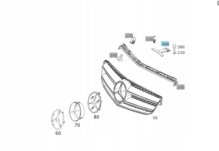 WSPORNIK PODPORA ATRAPY GRILLA PRZÓD MERCEDES C klasa W204 OE A2048851136