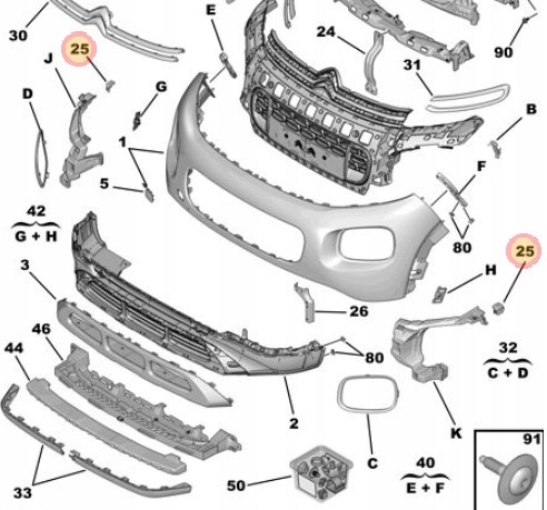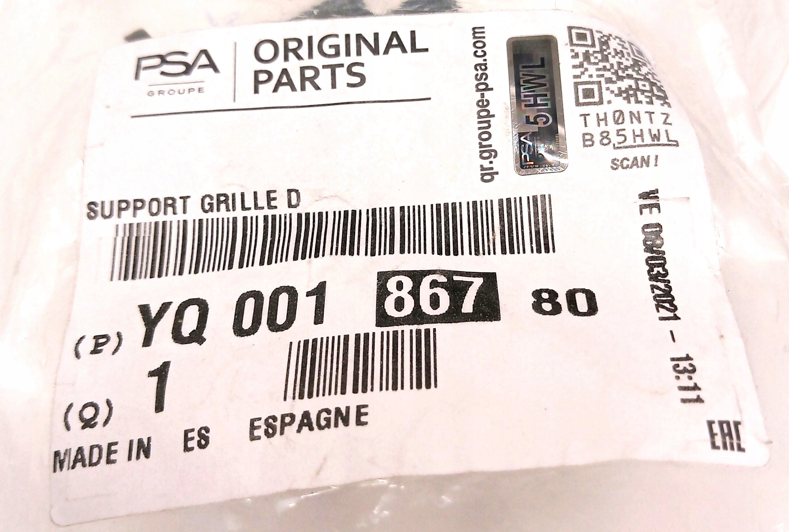 Wspornik prawy kratki zderzaka Citroen C3 Aircross OE YQ00186780