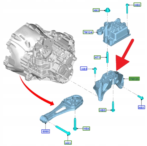 Wspornik skrzyni biegów - manual VMT6, silniki ECOBLUE