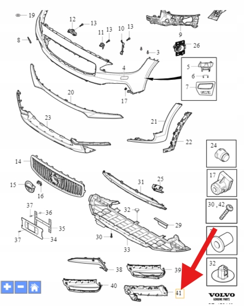 WSPORNIK ŚLIZG HALOGENU ZDERZAKA PRAWY PRZÓD VOLVO V90 CC 2017- OE 31383908
