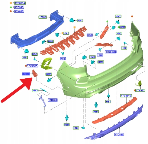 WSPORNIK ZDERZAKA LEWY TYŁ FORD KUGA 2024- 2790419 _ LV4B-17B891-DKB