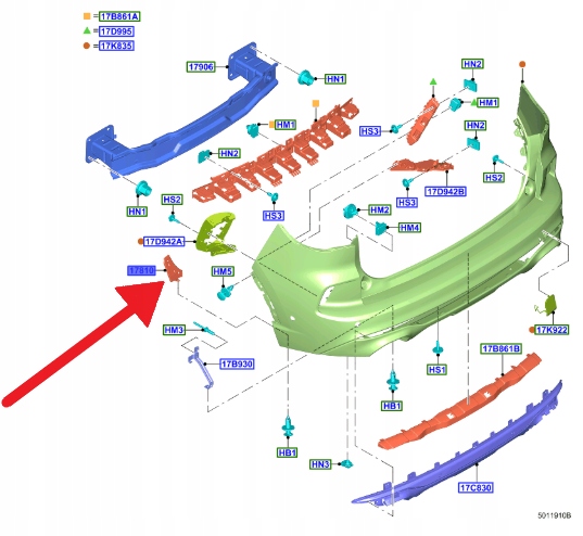 WSPORNIK ZDERZAKA PRAWY TYŁ FORD KUGA 2024- 2790417 _ LV4B-17B891-DJB