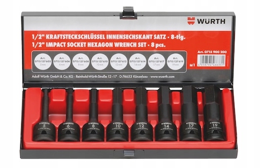 WURTH KLUCZ NASADKI UDAROWE IMBUS HEX 1/2 cala 8sz