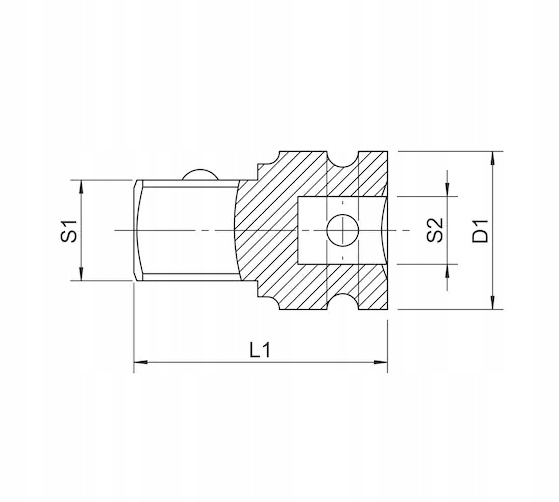 - Średnica zewnętrzna klucza nasadowego (D1): 44 mm