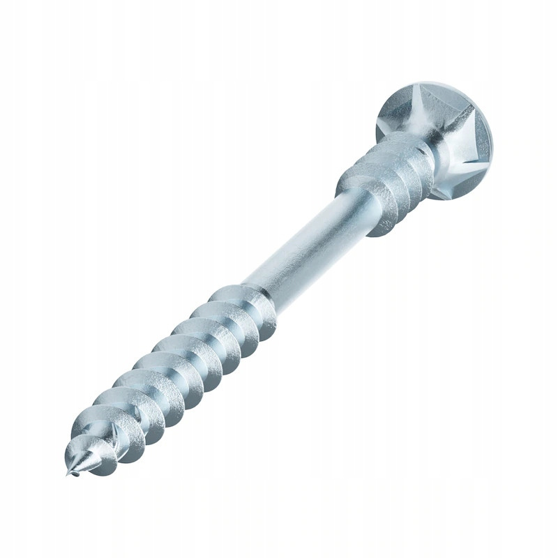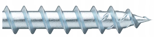 - Większe przeniesienie mocy w twardym drewnie dzięki wzmocnionej, asymetrycznej geometrii powierzchni nośnej gwintu grubozwojowego