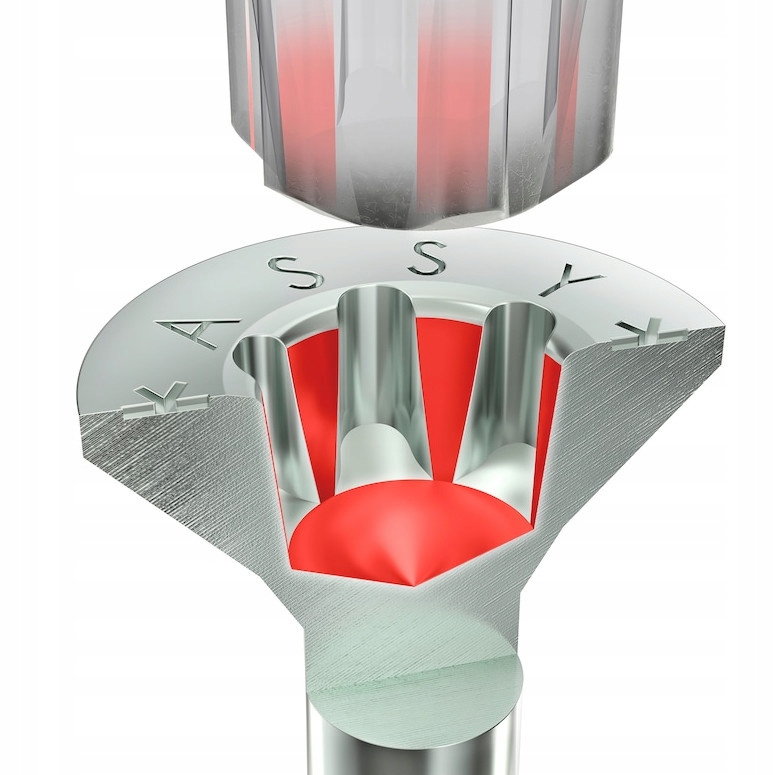 - Większa efektywność przeniesienia momentu obrotowego dzięki większej powierzchni styku bitu