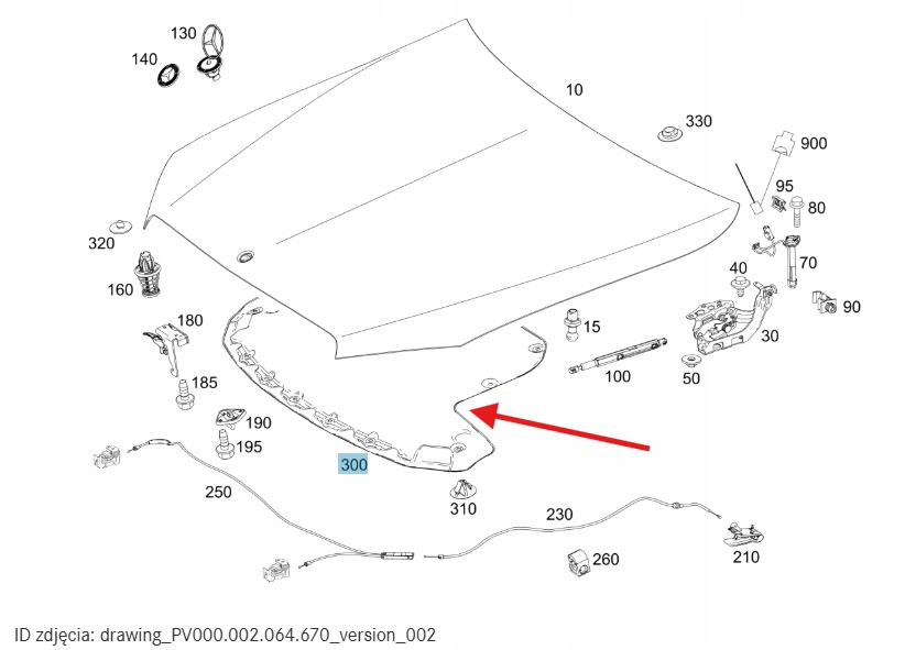 WYGŁUSZENIE MASKI MERCEDES C klasa W205 OE A2056820026