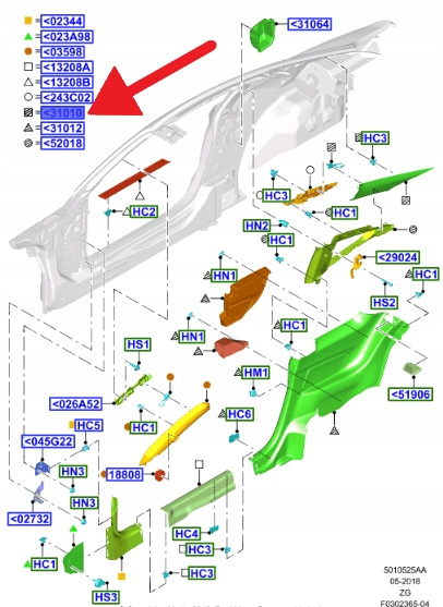 WYKOŃCZENIE PRAWE SŁUPKA C FORD MUSTANG 2015- 2320983 _ JR3B-6331010-AC3ZH