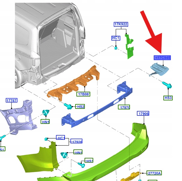 WZMOCNIENIE LEWE BELKI TYŁ FORD COURIER 2014- OE 1929299 _ ET76-17C945-AC