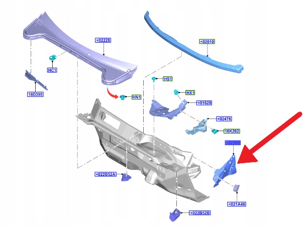 WZMOCNIENIE PRAWEGO SŁUPKA FORD FOCUS 2018- 2245110 _ JX7B-A02508-AC